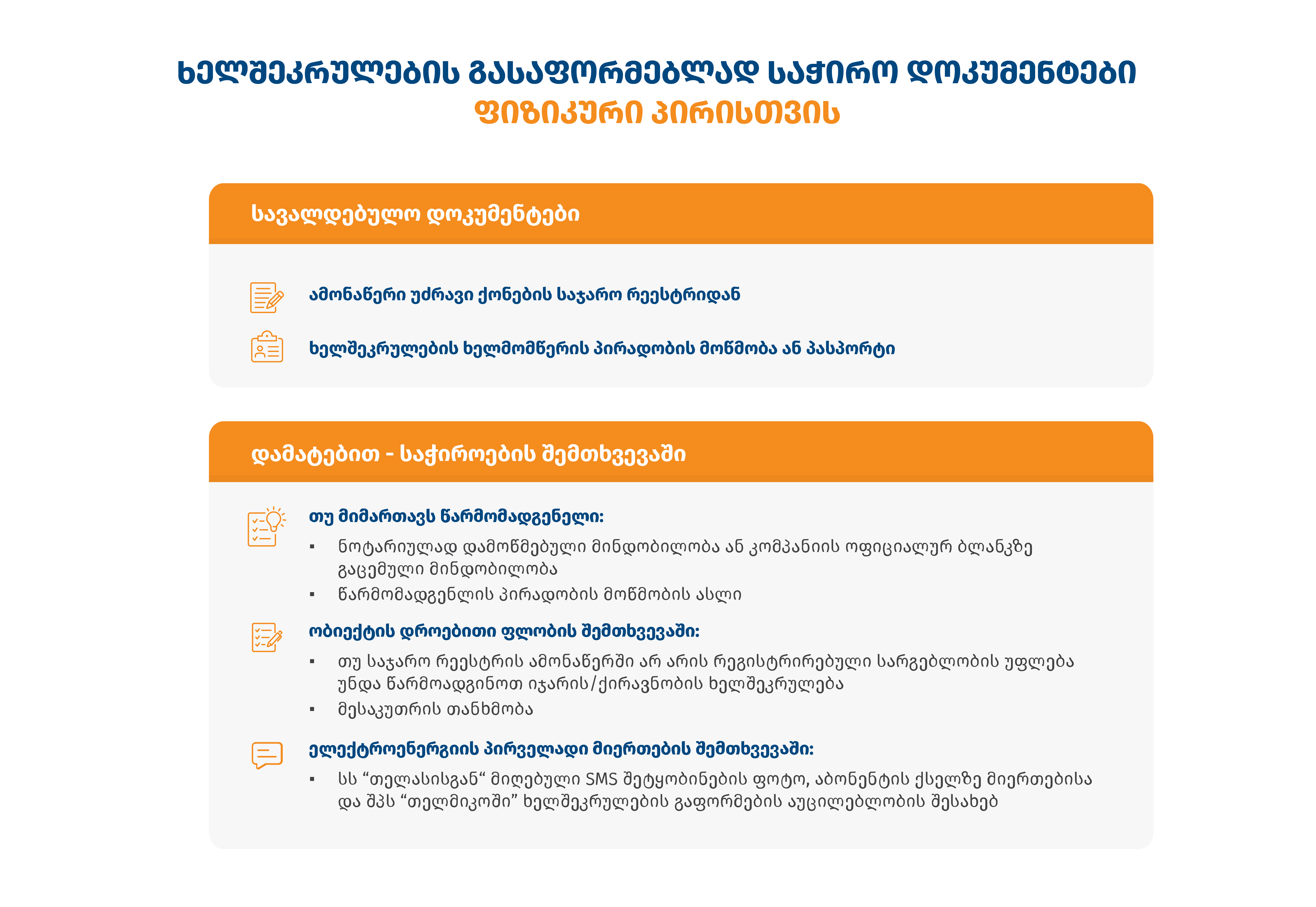 ხელშეკრულების გასაფორმებლად საჭირო დოკუმენტები